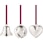 - Innehåller tre klassiska prydnader: julklocka, julkula och julhjärta.