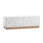 Modern mediabänk med grafiskt mönster i olika nivåer. Med snygg sockel som döljer alla kablar.