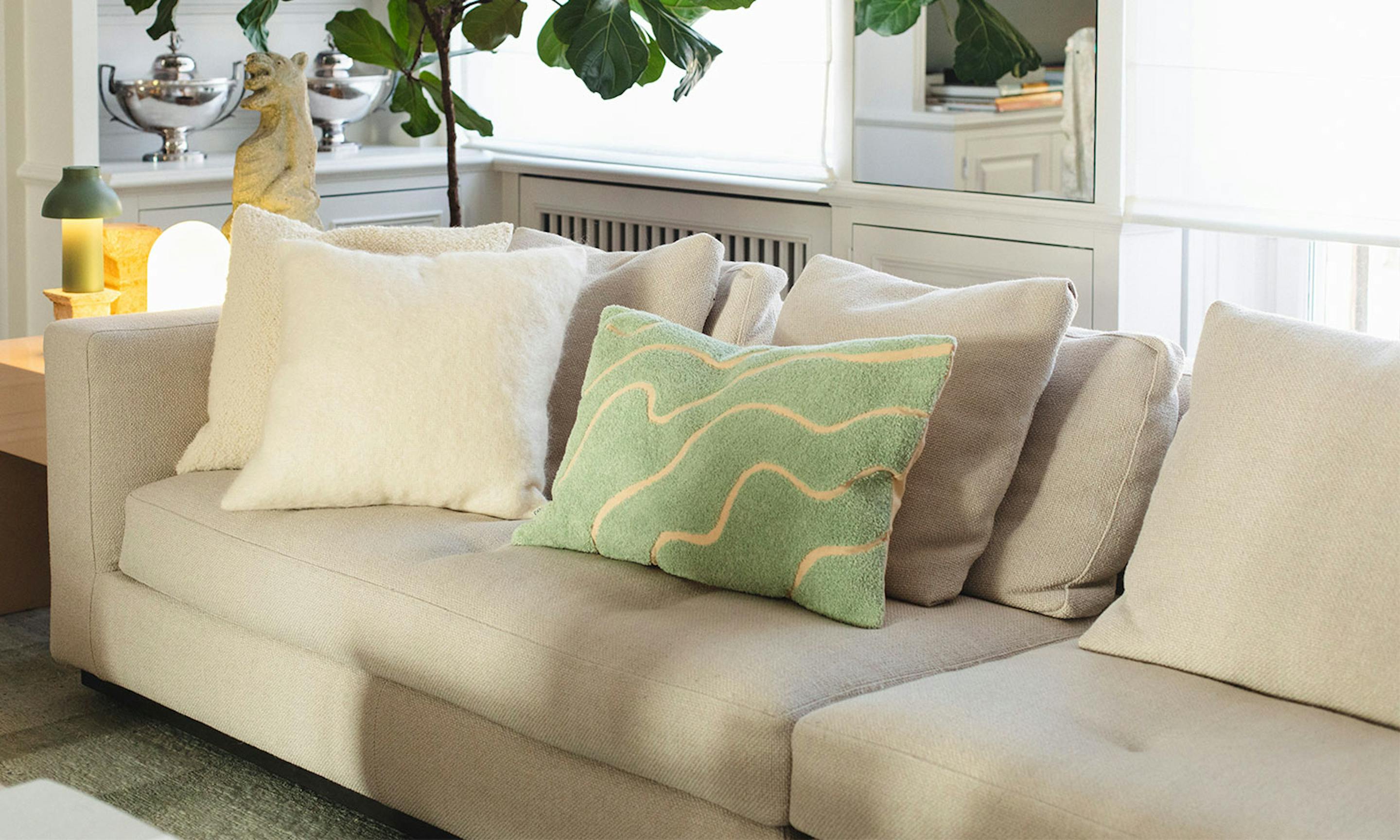 Byt ut tunga vintertextilier mot luftiga material och ljusa toner. Satsa på kuddfodral i linne eller bomull i dämpade pasteller, jordnära nyanser eller diskreta mönster för att skapa en ombonad men fräsch känsla. Addera färg genom enstaka kuddar i vårens trendiga blågröna nyanser.