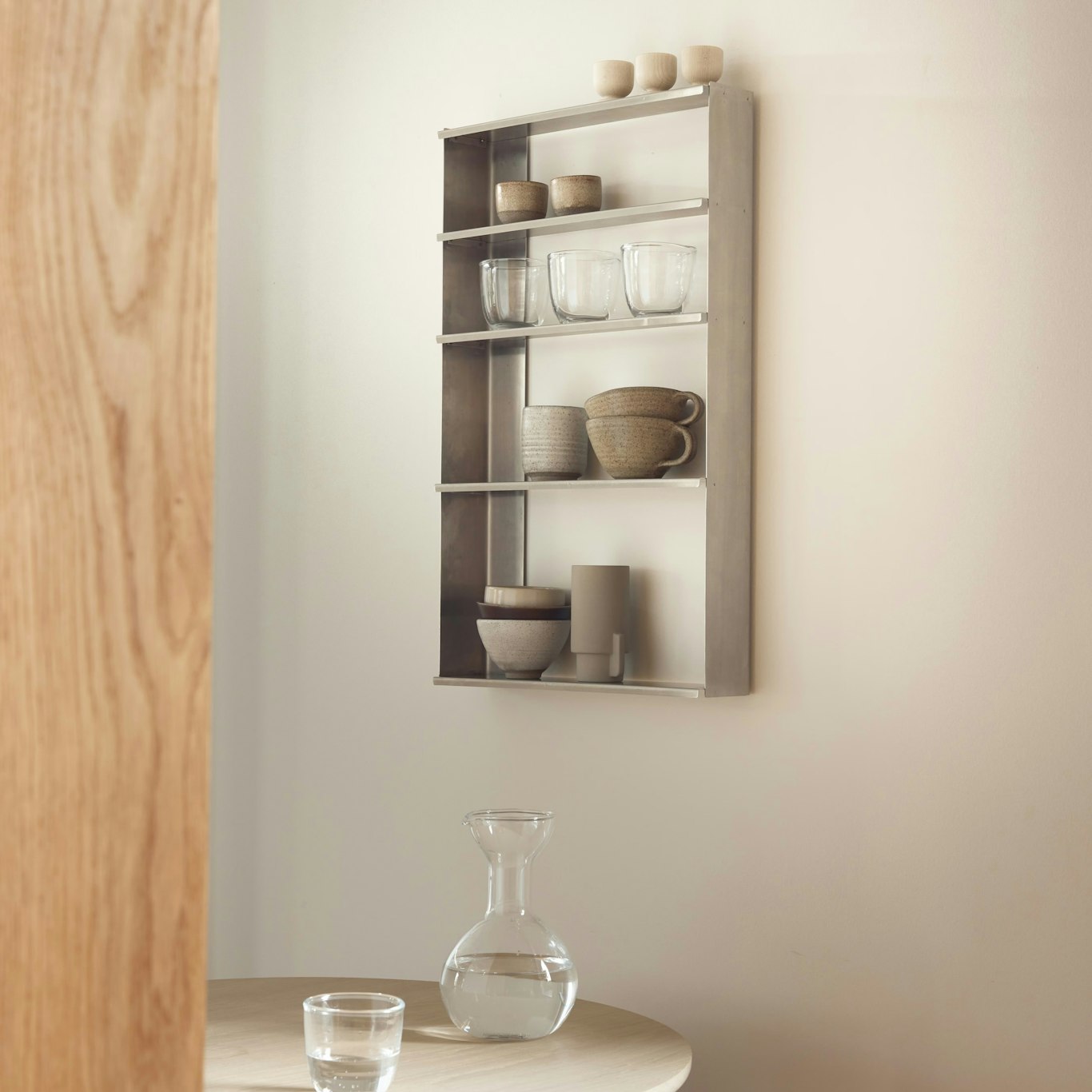Taper vägghylla från Form & Refine är en luftig och elegant förvaringslösning med ett tydligt arkitektoniskt uttryck. De tunna hyllplanen och den grunda profilen ger ett lätt och avskalat intryck, medan de bockade stålkanterna ramar in formen och skapar både stabilitet och visuell mjukhet. En funktionell hylla som låter vardagens föremål ta plats utan att kännas tung, perfekt för kök, badrum eller som en diskret detalj i hemmets mer sociala rum.