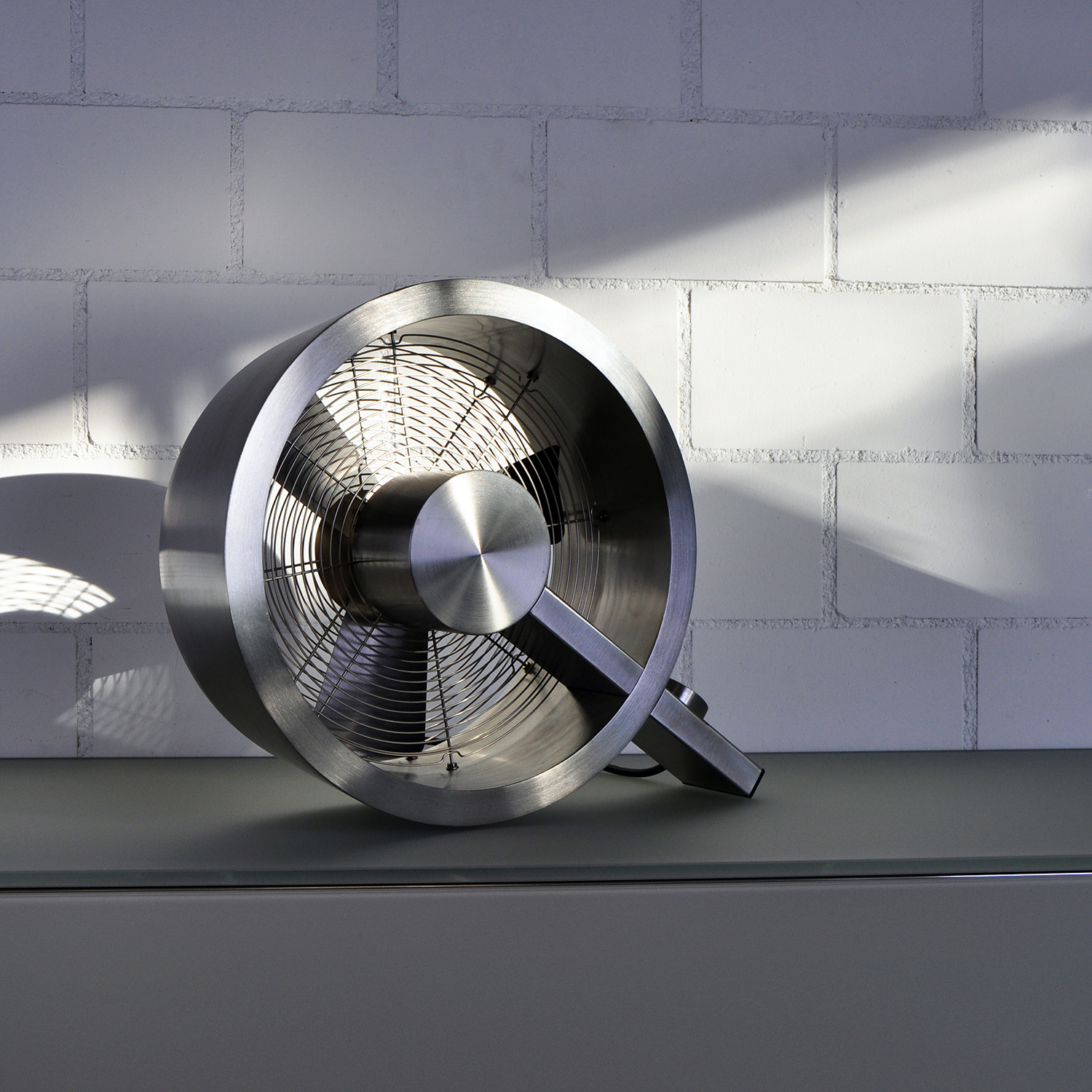 Fläkten från Stadler har en konstnärlig design med en innovativ form och smarta egenskaper. Den är tillverkad av rostfritt stål med tre olika hastigheter perfekta för en varm dag. Den har en justerbar lutningsvinkel med en avtagbar baksida för enkel rengöring.