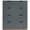 Byrån har fyra mjukstängande lådor tillverkade i lackerad MDF och vilar på en massiv eksockel som ger både stabilitet och ett vackert naturinslag. Den levereras med tippskydd och passar lika bra i sovrummet som i hallen eller vardagsrummet.