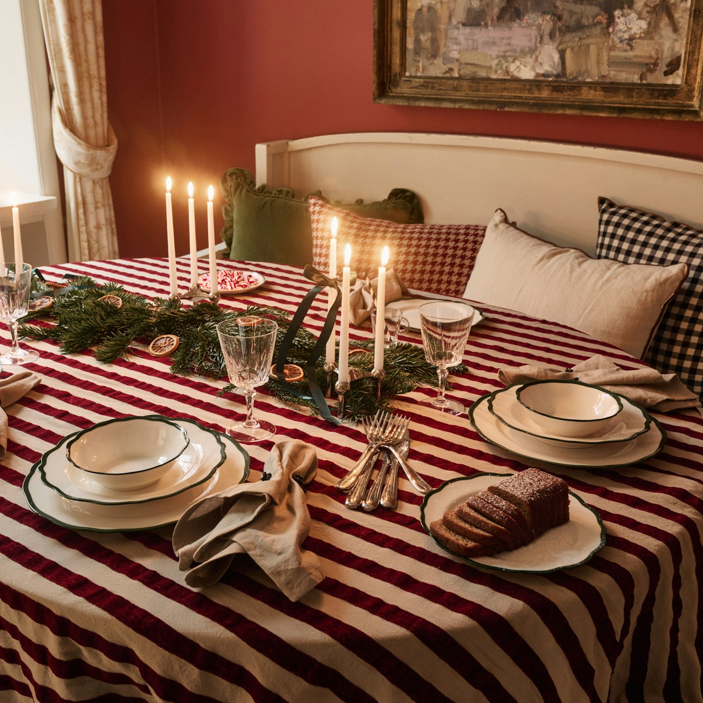 Vi inspireras just nu av ett klassiskt julbord med en modern twist – där vinröda ränder, vågiga porslinskanter och mjukt mönstrade kuddar skapar stämning. Decotiques nyheter i porslin och textil ger värme, tradition och ett personligt uttryck runt bordet. Det är detaljer vi själva längtar efter att duka med – och som vi tror blir lika omtyckta hos er.
